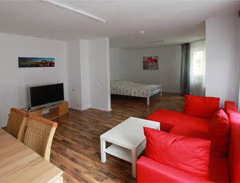 Großzügig ausgelegtes Apartment für bis zu 5 Personen. Kabel-TV, Küche und Badewanne komplett ausgestattet.